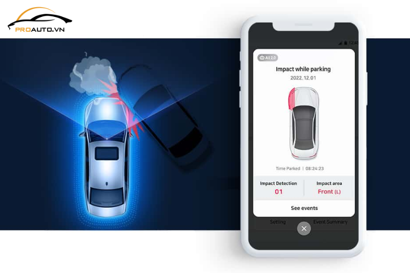 Hệ thống quản lý qua ứng dụng Finevu thông báo lập tức khi có va chạm xảy ra. Chủ xe sẽ nhận được thông tin chi tiết về 8 khu vực của xe cùng 3 mức độ nghiêm trọng. Với ứng dụng Finevu, việc theo dõi và quản lý tình trạng xe trở nên đơn giản và trực quan hơn bao giờ hết.