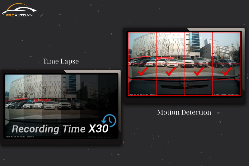 - Chế độ ghi khi đỗ xe: Ghi hình với tốc độ 4 khung hình/giây để đảm bảo an toàn mà vẫn hạn chế nhiệt độ và điện năng tiêu thụ.