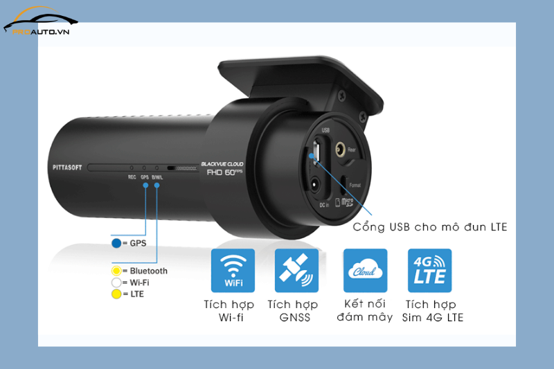 Thiết bị cũng có thể nâng cấp thêm module LTE (CM100GLTE) cùng SIM nano để tự truy cập internet, đồng thời chia sẻ Wi-Fi cho tối đa 5 thiết bị. Ngoài ra, tích hợp GPS giúp hiển thị tốc độ và vị trí xe trên bản đồ khi xem lại video.