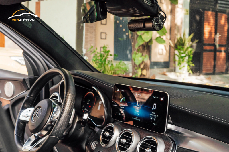 - Vị trí lắp camera trước nên đặt sau gương chiếu hậu để không cản trở tầm nhìn và tránh ánh nắng trực tiếp