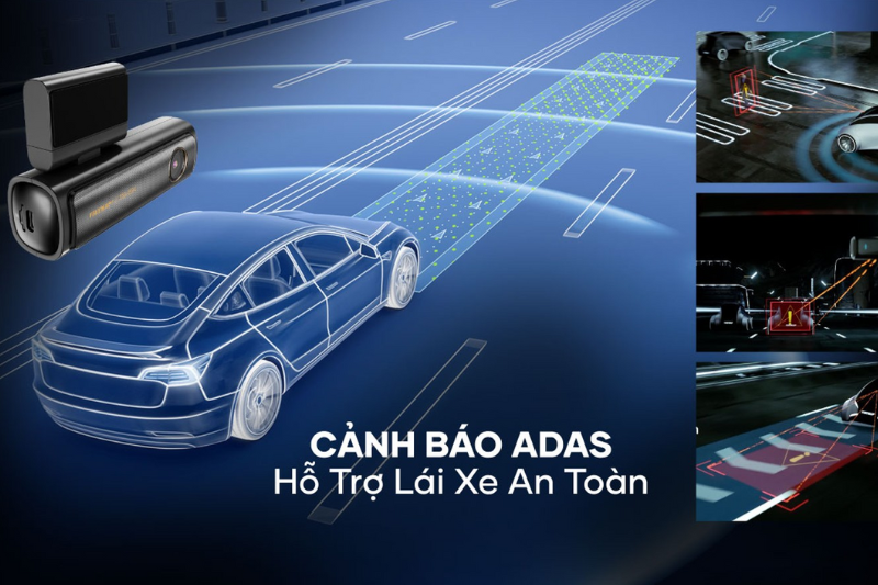 Camera hành trình Vietmap TS-5K còn hỗ trợ chức năng lái xe cảnh báo ADAS. ADAS sử dụng giọng nói thời gian thực để cảnh báo người lái về các tình huống nguy hiểm, bao gồm cảnh báo lệch làn đường, cảnh báo tiền va chạm, nhắc nhở khi xe phía trước di chuyển và cảnh báo va chạm với người tham gia giao thông. Điều này giúp giảm nguy cơ tai nạn và nâng cao sự an toàn khi lái xe.
