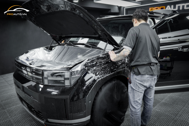 Kỹ thuật viên chuyên nghiệp dán PPF xe Hyundai Santafe 2024 tại PROAUTO.VN