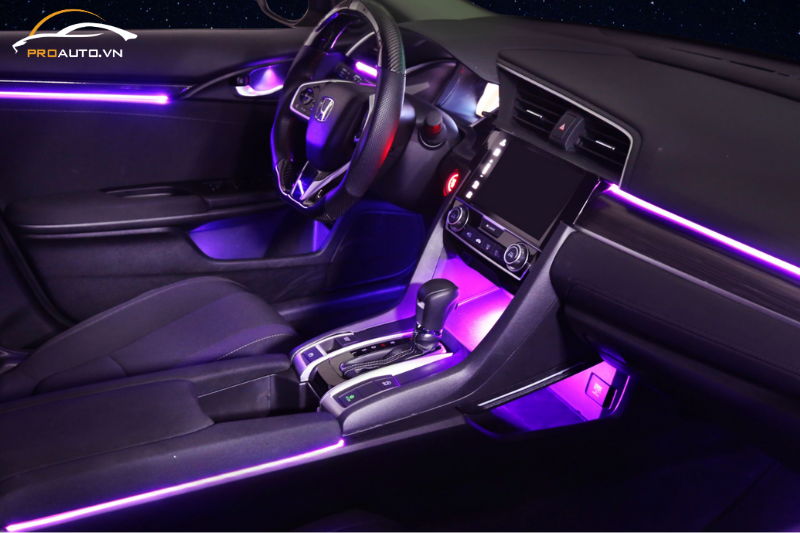 - Đèn LED không chỉ đẹp mà còn cung cấp ánh sáng tốt, giúp người ngồi trong xe dễ dàng quan sát bảng điều khiển và các vật dụng, đặc biệt là vào ban đêm, giảm thiểu rủi ro khi lái xe.